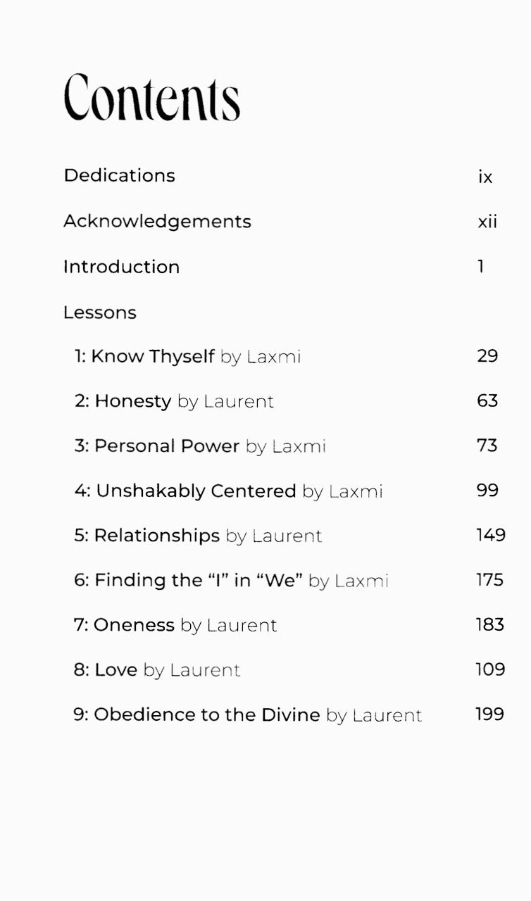 With chapters on: Know Thyself, Honesty, Personal Power, Unshakably Centered, Relationships, Oneness, Love, Humility, Drugs, Surrender, Saints and Spiritual Masters, The Avatar, Intuition, and Forgiveness